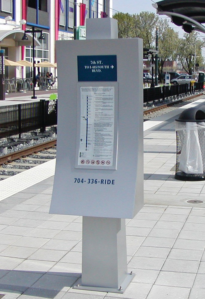 The Charlotte Area Transit System (CATS) hired Ilium to develop a branded signage program for the LYNX Light Rail system. The scope of work covered the full range of passenger-facing environments, including stations, park-and-ride facilities, the central business district (CBD), and off-site wayfinding. Ilium’s team designed and produced all passenger signage and information elements throughout the system, ensuring a cohesive and legible identity that guided riders from the street to the platform. This work extended Ilium’s existing relationship with CATS, which had previously included upgraded signage for system-wide bus stops and unique signage for CBD bus stops.