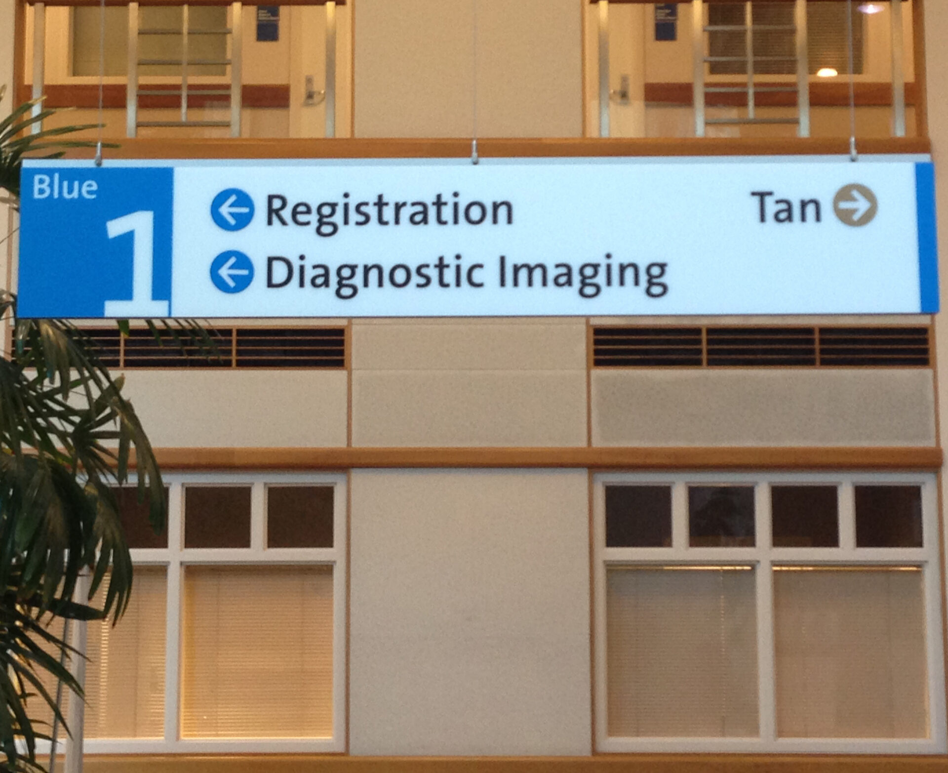 For EvergreenHealth, an interior and exterior wayfinding program was developed for their medical and hospital campus in Kirkland, Washington. A central challenge of the project was bringing clarity and consistency to a complex, multi-building campus that had grown over time, with entrance designations and signage that had become difficult for patients, visitors, and staff to navigate. A streamlined nomenclature system was developed for all entrance designations, replacing inconsistent naming conventions with a logical, unified approach that made it easier for people to orient themselves and clearly communicate their location across the campus.